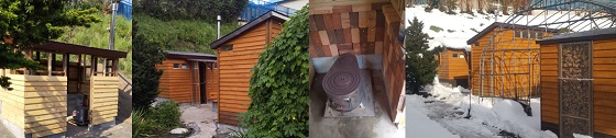 さらに調子に乗って、姪の薪小屋も立てた。エアコン放熱器のカバーも。右は、自分の家の煙突再掲載、