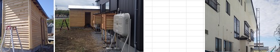 2023春 我が家を建てた棟梁の真似をして、裏の畑に薪ストーブのある小屋を建てた。薪小屋も大小2棟建てた。